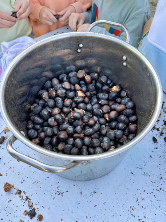 Nous avons également observé et dégusté des châtaignes grillées (ramassées par...